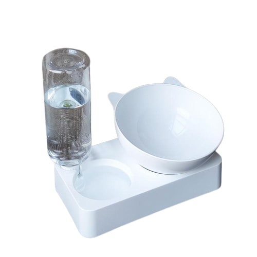 Gamelle orthopédique pour chat blanche avec distributeur à eau