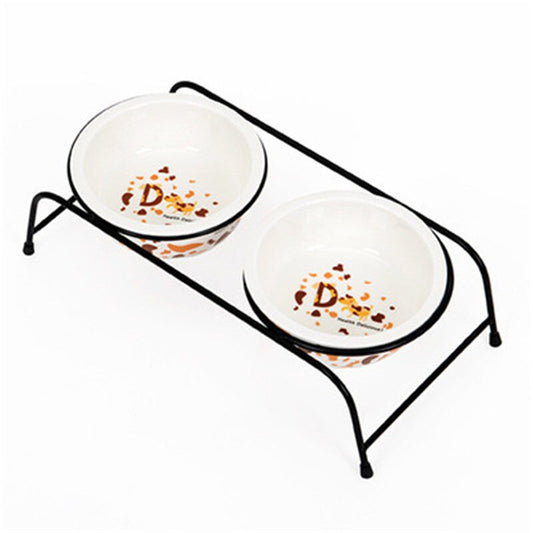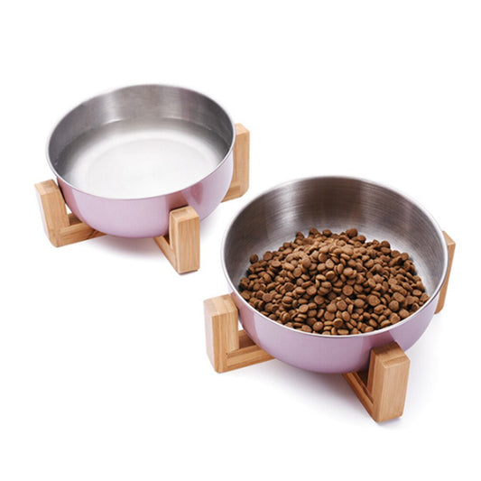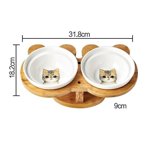 Gamelle pour chat design en porcelaine et céramique avec support en bois - Tendre Fripouille