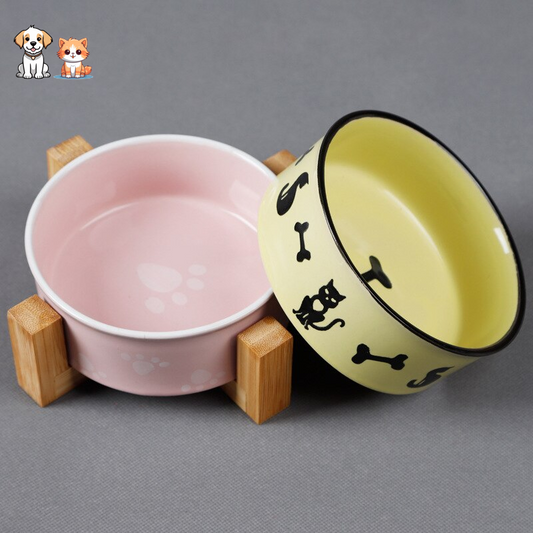 Gamelle pour chat design en céramique et bois avec motifs - Tendre Fripouille