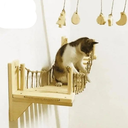 Arbre à chat en forme de pont en bois suspendu