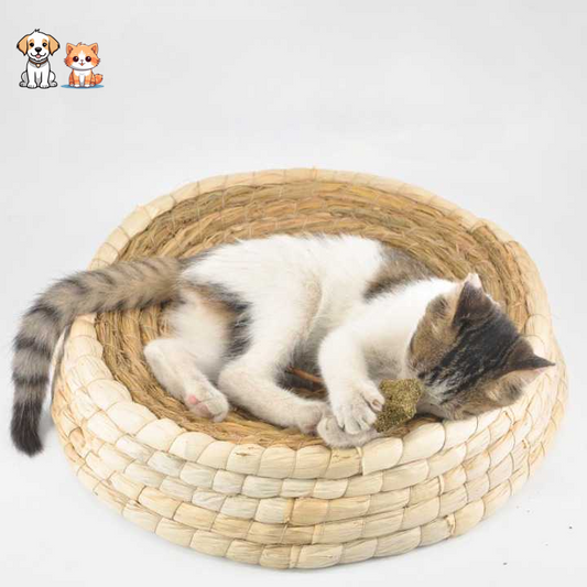 Lit en paille tissé à la main pour chat