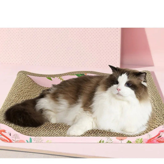 Planche à gratter pour chat en papier ondulé avec dessins de flamands roses