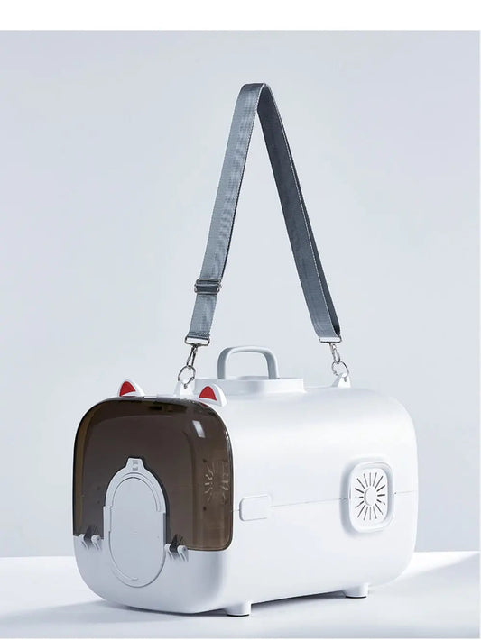 Boîte de transport en plastique vitrée avec poignée pour chat