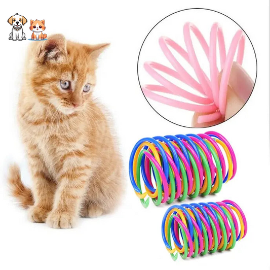 Set of four colorful coil springs for cats