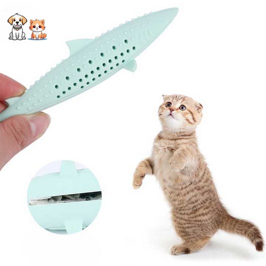Silicone fish-shaped toothbrush and catnip toy